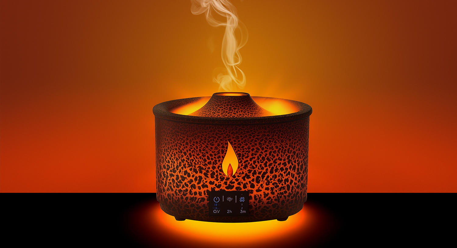 Designed for modern living, the Volcano Flame Humidifier combines stylish aesthetics with advanced ultrasonic technology—bringing comfort, fragrance, and elegance to your space.