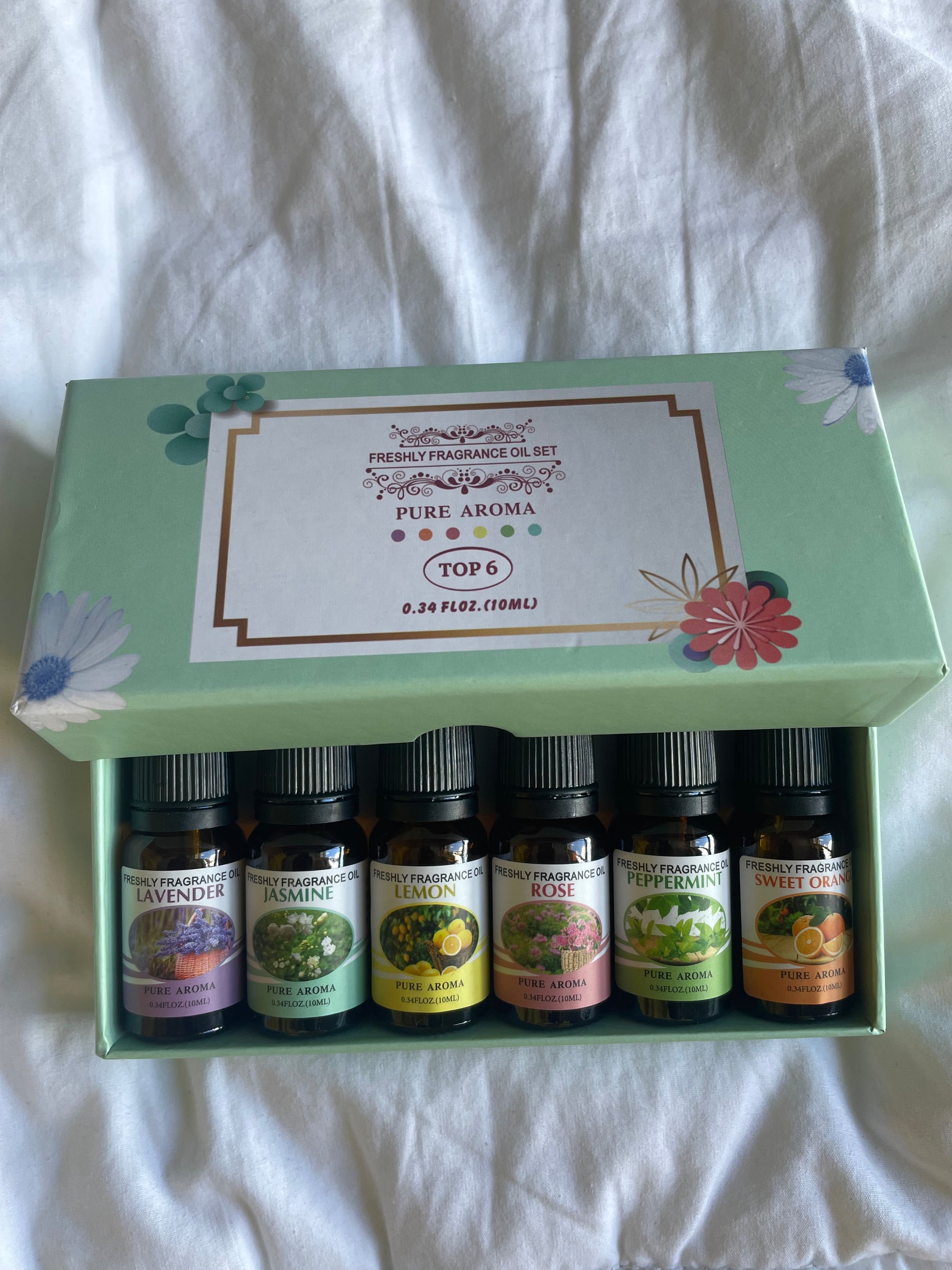 Essential Oil Set for Diffuser contains 6 x 10ml bottles: